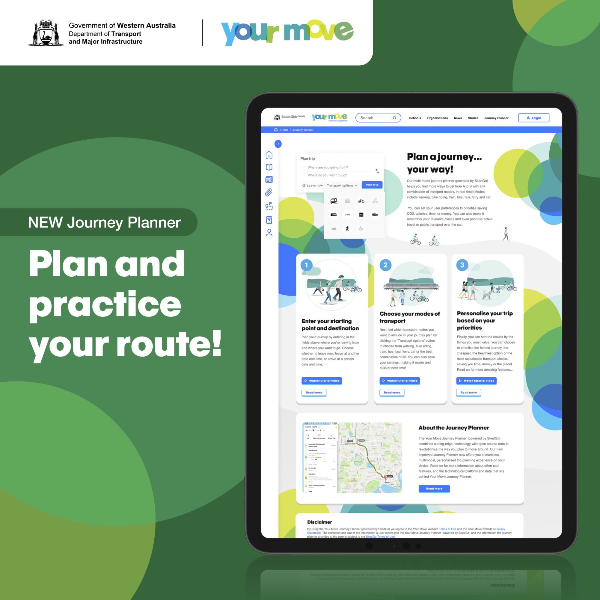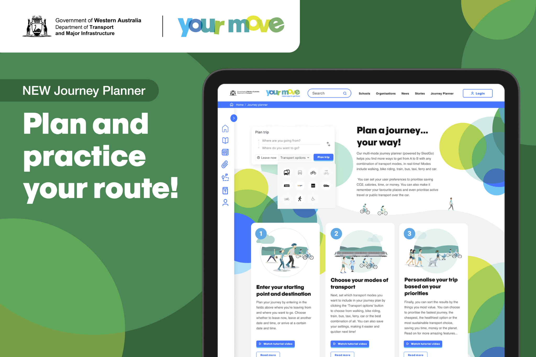 Your Move is a proactive and engaging program. Its branding is bright and lively, and we have plenty of great promotional tiles and templates for you to use to help you spread the active transport message.